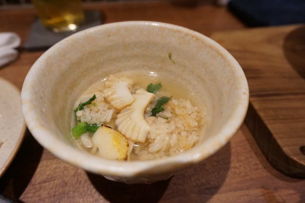 〆?は土鍋ごはん。イカと菜の花。